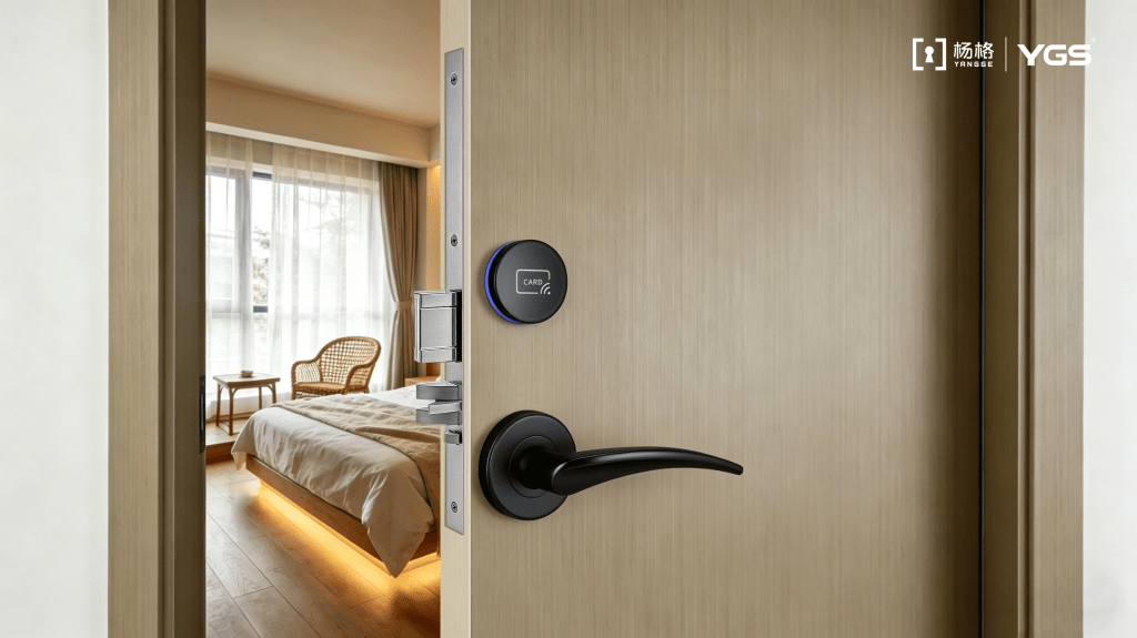 内部采用加固稳定的门锁结构,开关门响应灵敏、锁舌顺滑无卡顿,完美匹配同派客房安静舒适的休憩需求。