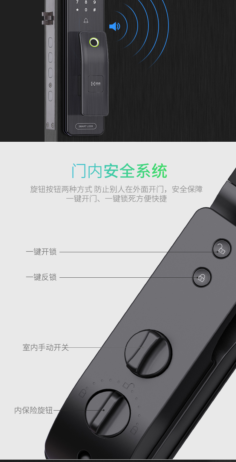 杨格自动推拉式智能门锁,录入指纹或密码即可推门而入,无需二次推拉把手开关,关门自动弹出锁舌上锁。